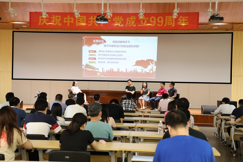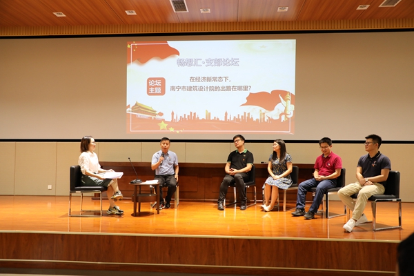 活動(dòng)在奏唱國歌中拉開(kāi)序幕,“暢想匯·支部論壇”是本次主題黨日的重點(diǎn)內容。在蔣晏平同志的主持下,黃磊群、何奇芳、王維紅和覃敏貴等4位黨員以論壇嘉賓身份圍繞“在經(jīng)濟新形勢下,南寧市建筑設計院的出路在哪里?”這一主題進(jìn)行了激烈而深入的探討,主持人還不時(shí)與場(chǎng)下的黨員互動(dòng),大家結合自己的工作實(shí)際,各抒己見(jiàn),暢所欲言,碰撞出更多新思路、新方向的火花。其中王維紅同志提出的基層黨建工作是黨的組織建設的重要環(huán)節,是基層單位完成各項工作任務(wù)的根本保證,因此單位的發(fā)展必須以黨建工作為引領(lǐng)的觀(guān)點(diǎn)得到了廣大黨員的認同,會(huì )場(chǎng)響起熱烈的掌聲。
