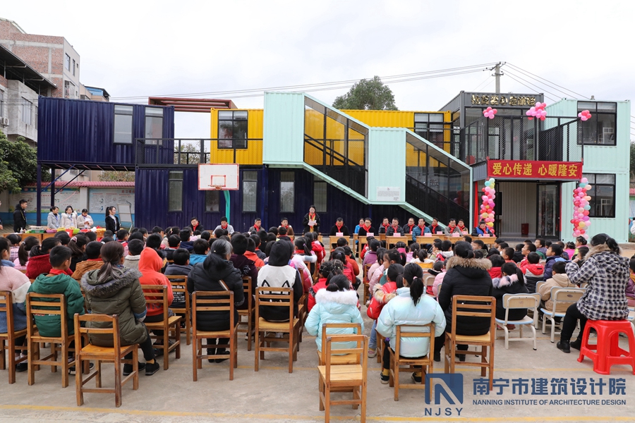 12月17日,寒風(fēng)瑟瑟,但在隆安縣古潭鄉育英村小學(xué)的校園內卻是暖意融融,歡樂(lè )不斷。當天上午,由我院無(wú)償設計的育英村小學(xué)宿舍樓“會(huì )飛的盒子008號”正式揭牌啟用,可為路途遙遠的學(xué)生們提供一個(gè)溫馨的居所。