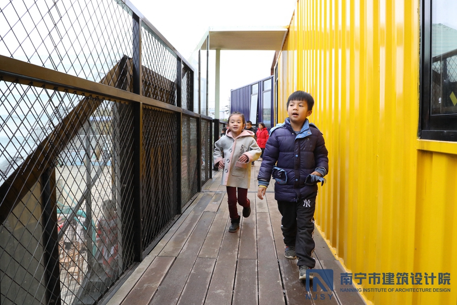 項目采用了集裝箱房屋的形式,由10個(gè)集裝箱構成,通過(guò)堆積木的形式,根據學(xué)生兒童所需的建筑風(fēng)格和功能需求,將集裝箱橫豎排列,形成一定的退臺和露臺空間,為孩子們提供更多共享活動(dòng)空間。