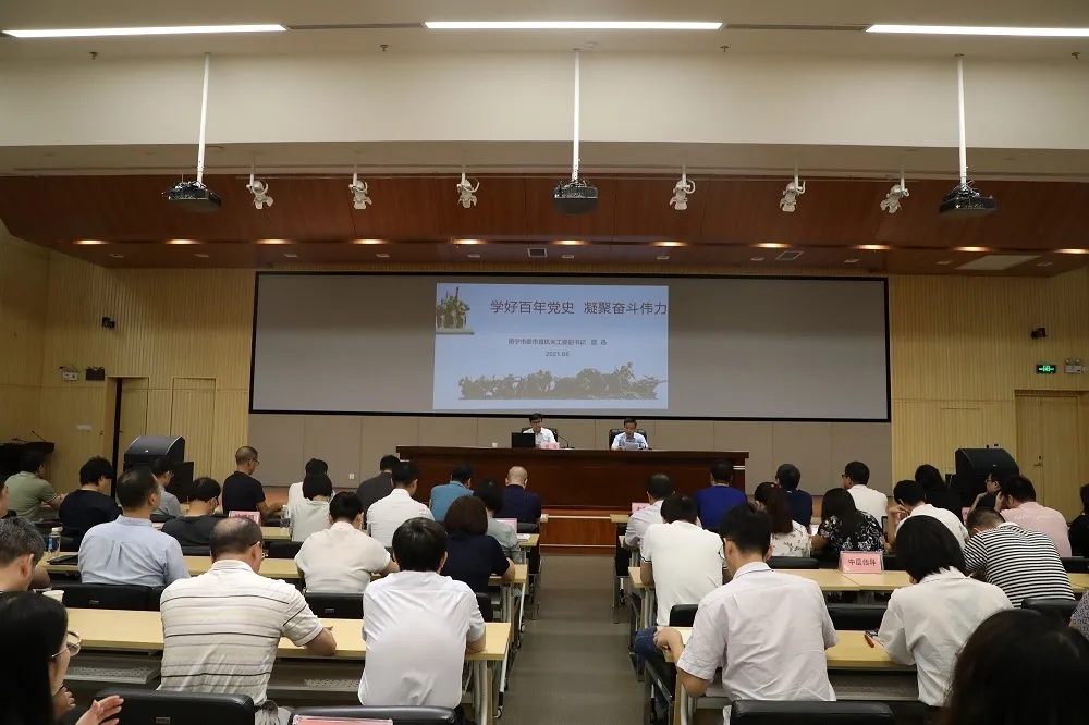 為幫助公司黨員干部更好地理解和開(kāi)展黨史學(xué)習教育,6月24日,公司黨委邀請了南寧市委市直機關(guān)工委副書(shū)記藍迅為公司黨員干部上了一堂生動(dòng)的黨史學(xué)習教育專(zhuān)題黨課,公司黨委書(shū)記韋文學(xué)主持會(huì )議,公司全體黨員和中層以上領(lǐng)導干部近160余人現場(chǎng)聆聽(tīng)了專(zhuān)題黨課。