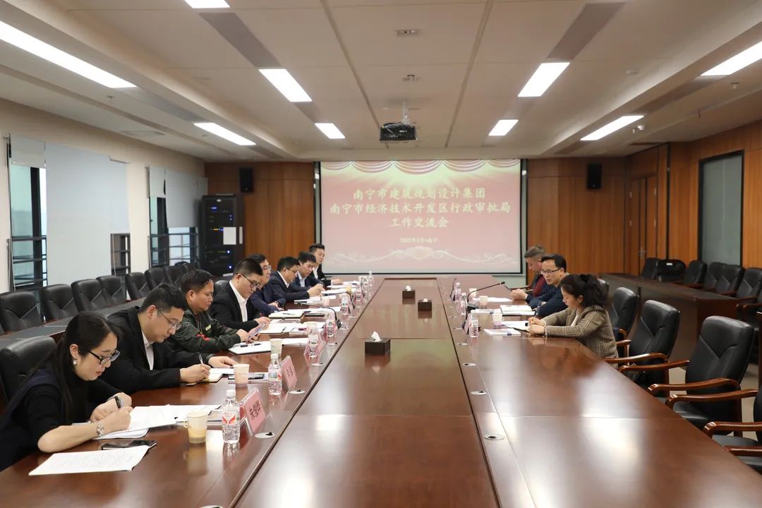 在工作交流會(huì )上,何建匯局長(cháng)充分肯定了我集團服務(wù)團隊的實(shí)力和表現。他表示,2021年以來(lái),經(jīng)開(kāi)區為了進(jìn)一步優(yōu)化營(yíng)商環(huán)境,將政策落實(shí)到實(shí)處,推出的“拿地即開(kāi)工”項目服務(wù)模式,積極推動(dòng)轄區項目在拿地前辦理完各項審批手續,在此期間,南寧市建筑規劃設計集團作為項目的設計咨詢(xún)單位,提前介入,高效配合,展現出專(zhuān)業(yè)的服務(wù)水平,有力地推動(dòng)了柳鋼配套卿蕊捷項目成為臨空經(jīng)濟示范區首個(gè)成功實(shí)施 “拿地即開(kāi)工”項目。