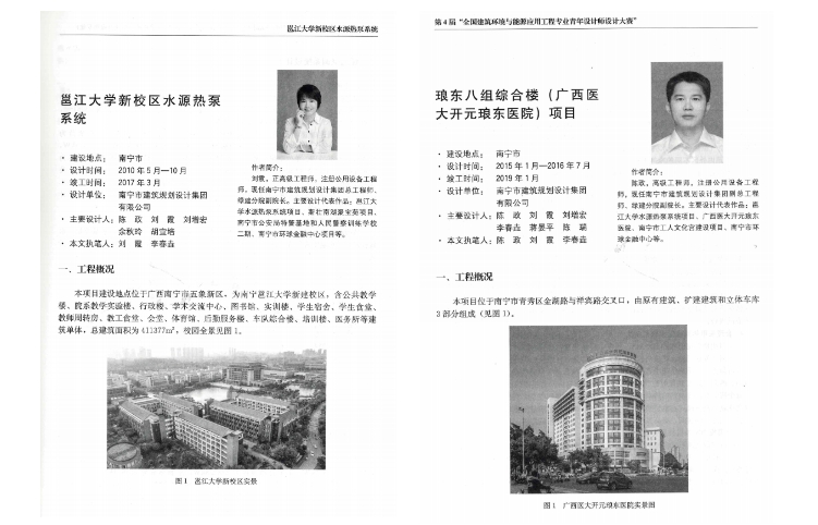 其中,集團綠色建筑設計研究分院李春垚入選第2批中國勘察設計協(xié)會(huì )建筑環(huán)境與能源應用專(zhuān)業(yè)青年人才庫人員名單。集團設計項目“邕江大學(xué)新校區水源熱泵系統”和“瑯東八組綜合樓(廣西醫大開(kāi)元瑯東醫院)”獲《全國勘察設計建筑環(huán)境與能源應用工程專(zhuān)業(yè)優(yōu)秀工程3》收錄并出版發(fā)行。