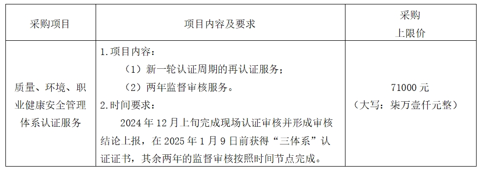 為進(jìn)一步提升企業(yè)管理水平,確保企業(yè)在質(zhì)量、環(huán)境和職業(yè)健康安全方面符合相關(guān)標準要求,南寧市建筑規劃設計集團有限公司決定就本公司質(zhì)量、環(huán)境、職業(yè)健康安全管理體系認證服務(wù)項目擬采用公開(kāi)詢(xún)比方式擇優(yōu)選定供應商,歡迎符合資格條件的供應商前來(lái)參加。
